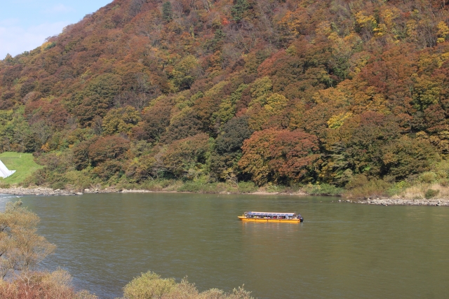最上川 川下り 舟下り 紅葉 木々 川