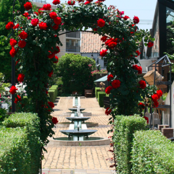 豊かな自然に囲まれた、開放感あふれる園内で、ゆっくり散策をお楽しみください。オープンデッキのカフェテラスでの、バラを眺めながらのティータイムも、どうぞお気軽に。